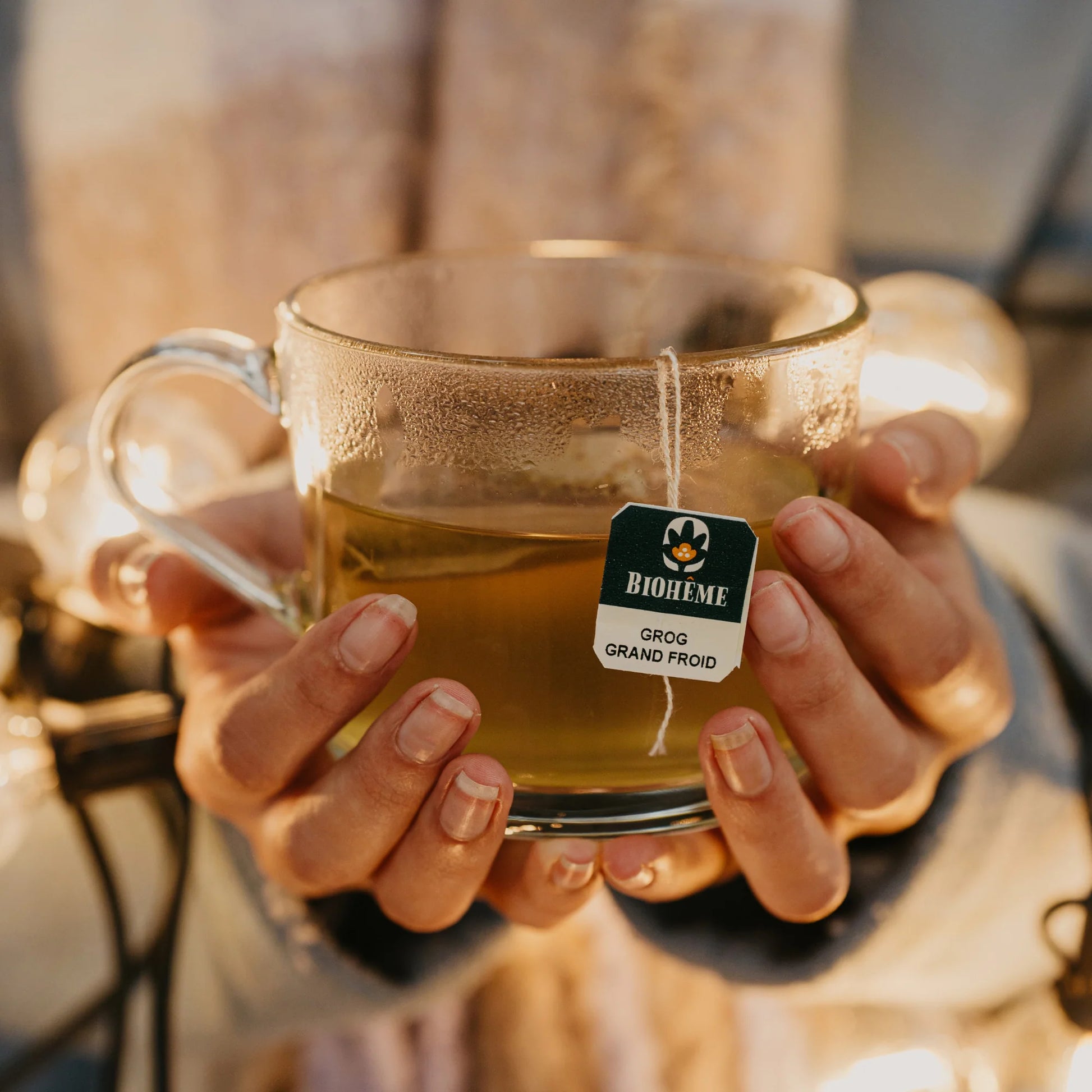 Petit coup de froid ? Rien de tel qu'une infusion pour se réchauffer ! Le thym et l'eucalyptus livrent leur puissance aromatique. Les épices de cannelle et de gingembre sont reconnues pour stimuler les défenses naturelles de l'organisme. Le citron et la mauve s'associent à merveille à cette recette douce et réconfortante.