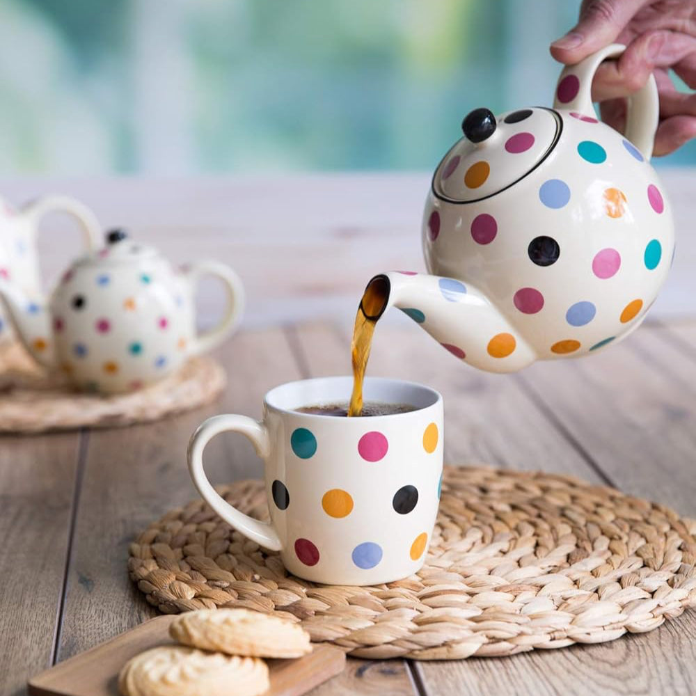 La fonctionnalité impeccable rencontre la forme fabuleuse dans cette jolie théière multicolore à pois London Pottery :